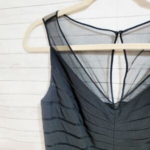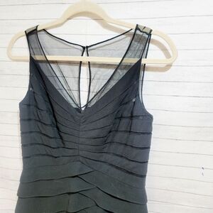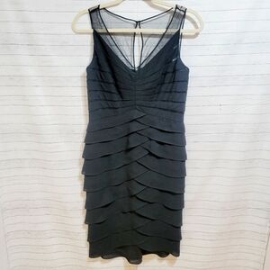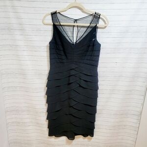 ADRIANNA PAPELL BLACK BANDED BODYCON DRESS, W MESH NECK DETAIL, sz 8