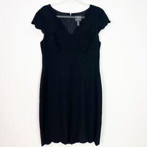 ADRIANNA PAPELL BLACK SCALLOPED CREPE SHEATH COCKTAIL CLASSIC DRESS WOMENS SZ 12