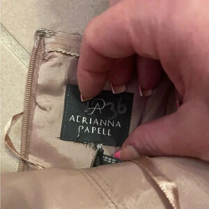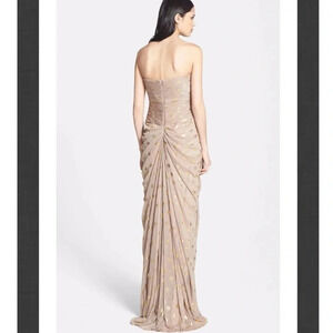 - ADRIANNA PAPELL BLUSH FOILED METALLIC DOT DRAPED STRAPLESS GOWN SZ 6