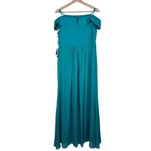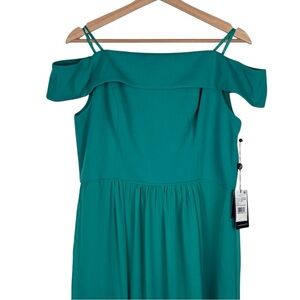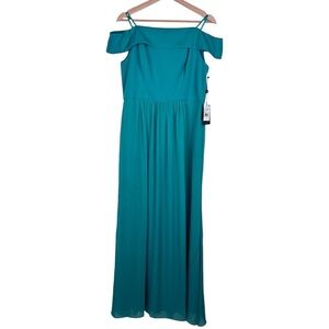 ADRIANNA PAPELL BOTANIC GREEN OFF THE SHOULDER CREPE CHIFFON EVENING GOWN DRESS