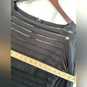 ADRIANNA PAPELL Banded Cocktail Dress 8 Black Sheer Bell Sleeves Pleated Stretch