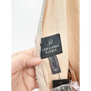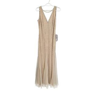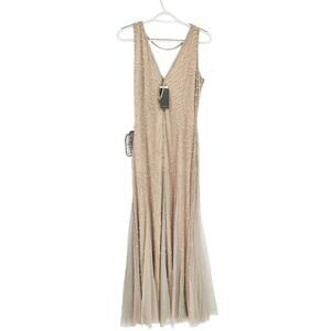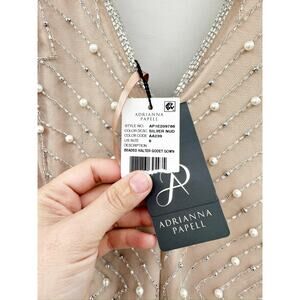 ADRIANNA PAPELL Beaded Halter Godet Gown Silver Nude Beaded Size 6 NWT