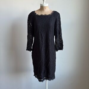 ADRIANNA PAPELL Black Lace Sheath Dress Size 14