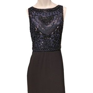 ADRIANNA PAPELL Black Maxi Dress w/Beaded Bodice Size 8
