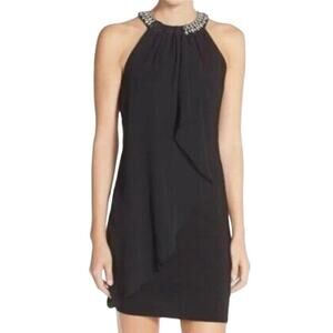 ADRIANNA PAPELL Black Ruffle-Front Rhinestone Bin Mini Cocktail Dress - Sz 12