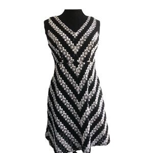 ADRIANNA PAPELL Black and White Knee Length Dress Size 6P Previously Owned