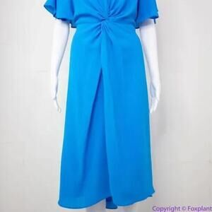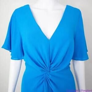 ADRIANNA PAPELL Blue Twist Front High-low Flutter Sleeve Cocktail Dress, 14