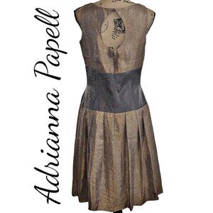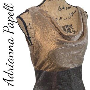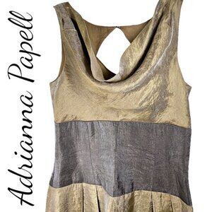 ADRIANNA PAPELL Bronze Silver Metallic Cowl Neck Sleeveless Cocktail Dress, Sz 8