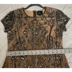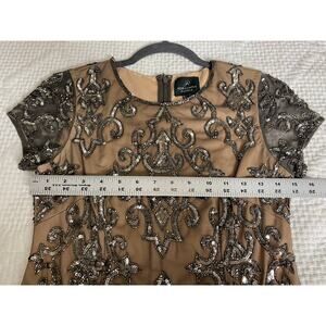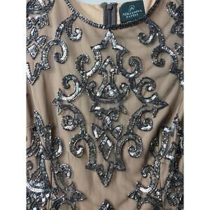 Adrianna Papell Silver Damask Embellished Beaded Sequin Jeweled Cocktail Short Mini Dress 2