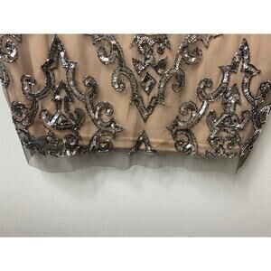 ADRIANNA PAPELL DRESS 2 SEQUIN BEADED MESH SHEER TAN NUDE SILVER MINI COCKTAIL