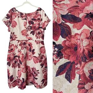 NWT ADRIANNA PAPELL DRESS 20W FLORAL JACQUARD METALLIC TEA-LENGTH BEIGE RED GOLD FORMAL SHORT COCKTAIL FALL WEDDING GUEST