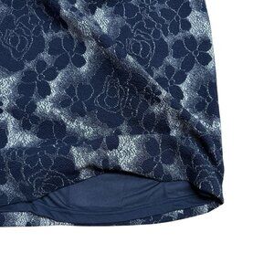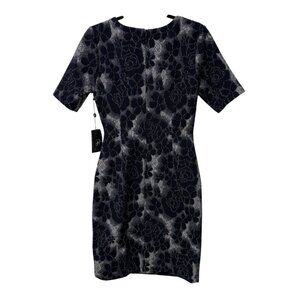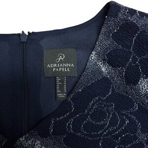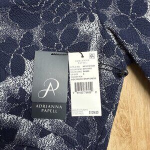 ADRIANNA PAPELL DRESS EMBROIDERED FLORAL NAVY BLUE SIDE RUCHED ELEGANT SZ 6 NEW