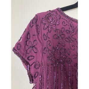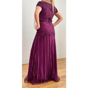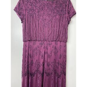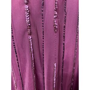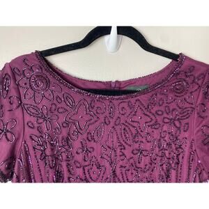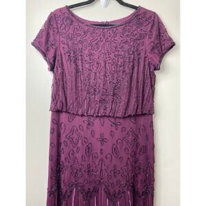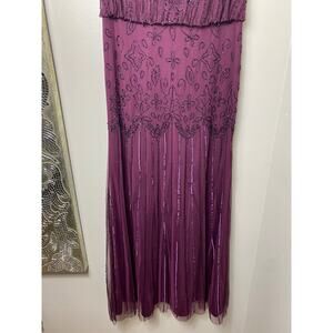 ADRIANNA PAPELL DRESS 10 GOWN SEQUIN BEADED FLORAL MESH SHEER CASSIS PURPLE