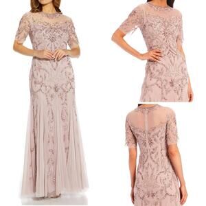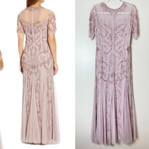 ADRIANNA PAPELL DRESS GOWN BEADED FLORAL FORMAL SEQUIN LONG MAXI EVENING FAIRY