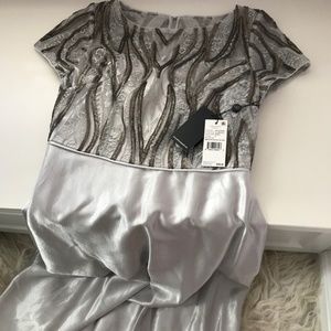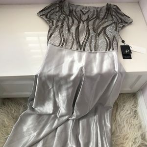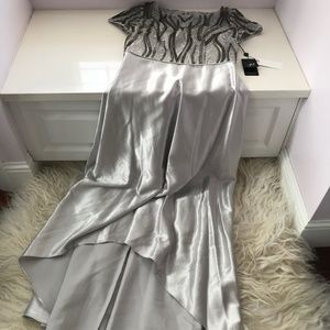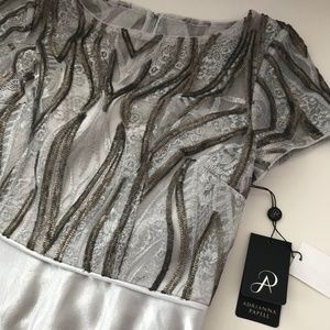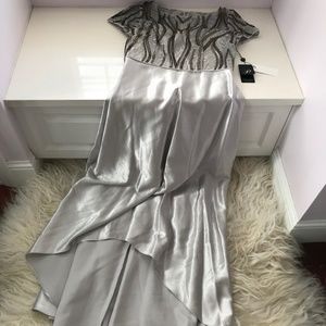 ADRIANNA PAPELL Embroidered Satin Hi-lo Gown