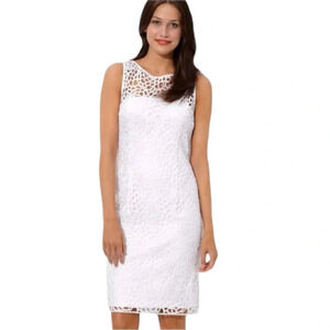 Adrianna Papell Evening White Crochet Lace Overlay Occasion Party Dress