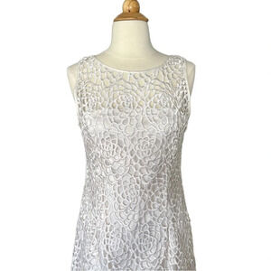 ADRIANNA PAPELL Evening White Crochet Lace Overlay Dress Occasion Party Size 6