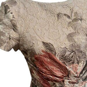 This stunning Adrianna Papell dress boasts a beautiful floral pattern, with shades of pink, green, and white. The dress is a size 4 and features short sleeves, making it perfect for any formal occasion, such as a wedding or cocktail party. The dress has a sheath style, with a long length that adds an elegant touch to the overall look. The dress is sure to turn heads with its vibrant colors and intricate floral design, making it a standout piece for any wardrobe. Whether you're attending a formal event or simply looking for a statement piece, this Adrianna Papell dress is the perfect choice.