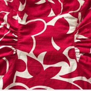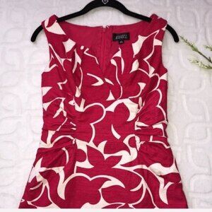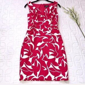 ADRIANNA PAPELL Bright Pink and white floral linen blend sheath dress. Lined. Sleeveless. Size tag reads size 4. Great pre-owned condition. Minor textured linen areas.