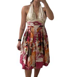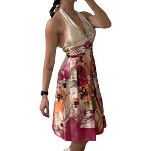 ADRIANNA PAPELL Halter Dress Floral Sequin Silk Gown Size 4 Y2K Bridal Spring
