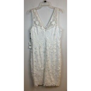 ADRIANNA PAPELL Ivory Floral Embroidered Sheath Dress Women 12 Overlay Cocktail