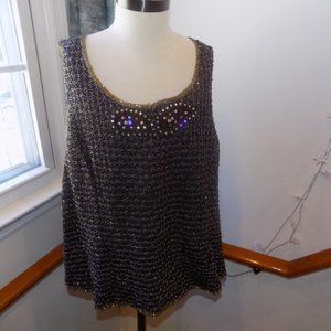 Adrianna Papell Plus Size 20 Set 100% Silk Jacket & Sleeveless Top Fur Trim
