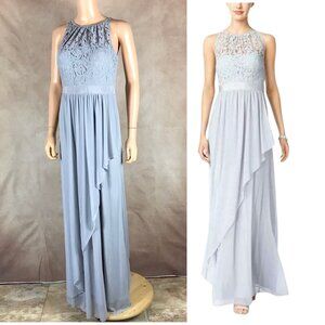 ADRIANNA PAPELL Lace & Chiffon Gray Maxi Dress/Gown