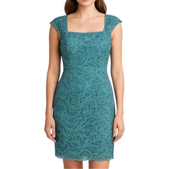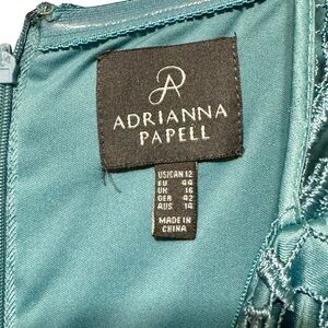 ADRIANNA PAPELL Lace Square Neck Formal Cocktail Blue Dress Size 12
