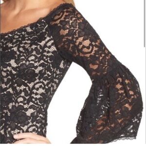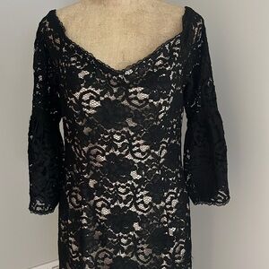 ADRIANNA PAPELL Monet Black Lace Off The Shoulder Dress size 8