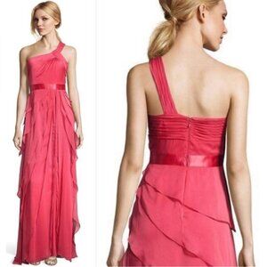 ADRIANNA PAPELL Navy Chiffon Draped One Shoulder Flutter Maxi Formal Dress sz 2