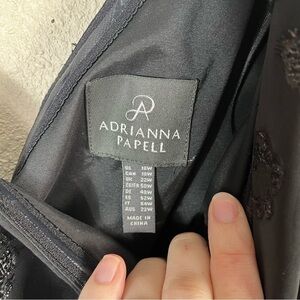 ADRIANNA PAPELL Plus Size Black Floral Chiffon One-Shoulder Jumpsuit. Beautifully draped floral chiffon cascades down the single shoulder of a stunning jersey one-piece with wide-leg pants that further the drama. Hidden zip closure. One-shoulder neckline. One sheer elbow-length sleeve. Lined. Runs large according to Nordstrom - see measurements.