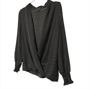 ADRIANNA PAPELL Polka Dot Wrap Blouse - Medium - black and white polkadot - EUC