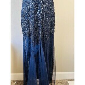 ADRIANNA PAPELL Prom SZ 10 Cap Sl Dress Sequin Navy Blue Beaded Gown Sleeve $229