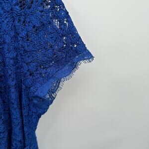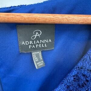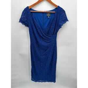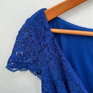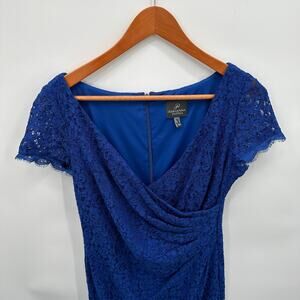 ADRIANNA PAPELL Royal Blue Short Sleeve Lace Surplice Knee Length Dress // 6