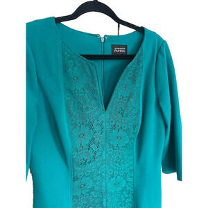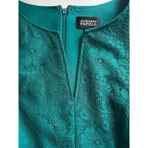 ADRIANNA PAPELL Size 10 Sheath Dress Green Lace Stretch Office Wedding Formal