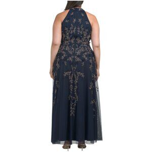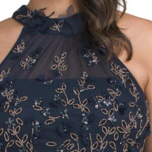 ADRIANNA PAPELL Sleeveless Halter Beaded Gown