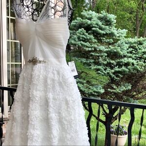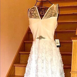 Gorgeous & stunning ADRIANNA PAPELL IVORY SLEEVELESS TULLE CHIFFON PETAL GOWN