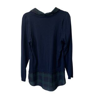 ADRIANNA PAPELL TWOFER SWEATER SCHOOL PREPPY PLAID BLUE GREEN COLLARED SIZE M