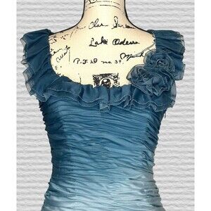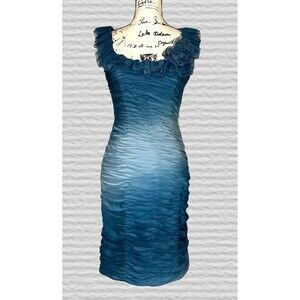 ADRIANNA PAPELL Teal Ombre Ruched Rosette Dress Size 6 Wiggle Party Evening