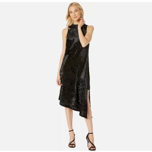 ADRIANNA PAPELL VELVET DRESS ASYMMETRICAL HEM PERFORATED HIGH SIDE SLIT SIZE M