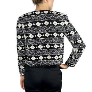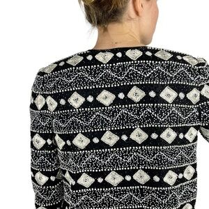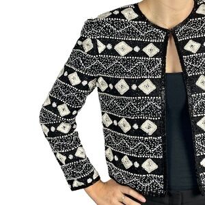 ADRIANNA PAPELL VINTAGE SILK BEAD EMBELLISHED BLACK WHITE EVENING HOLIDAY JACKET