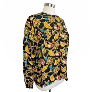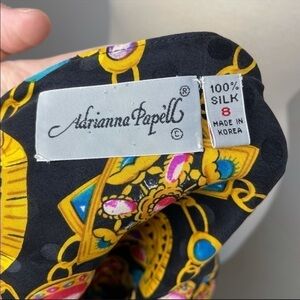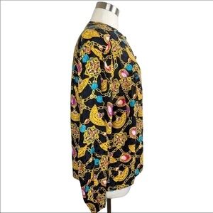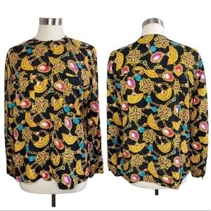 ADRIANNA PAPELL Vintage 100% Silk Chain Jewel Button Up Blouse size 8