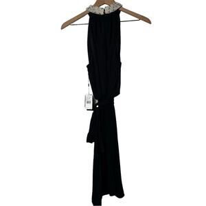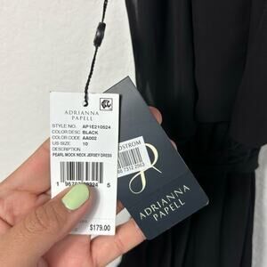 ADRIANNA PAPELL WOMEN'S PEARL MOCK NECK JERSEY MINI DRESS BLACK 10 BRAND NEW
