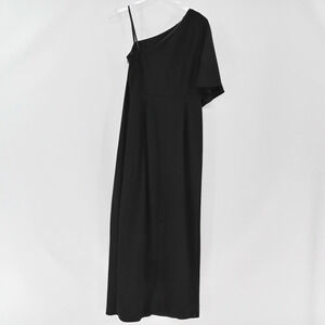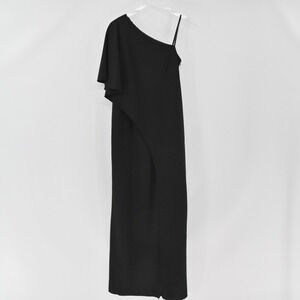 ADRIANNA PAPELL Womens Black One Shoulder Dress Size 6 Asymmetrical Drape Gown