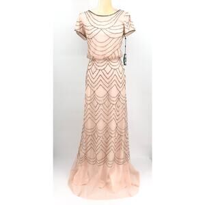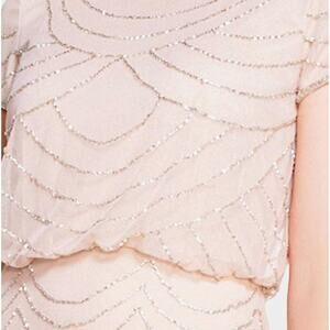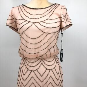 ADRIANNA PAPELL Women's Blouson Beaded Dress Size 8 Blush Pink NWT FLAW