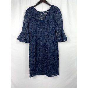 ADRIANNA PAPELL Women's Embroidered Mini Blue Dress SIZE: 4