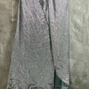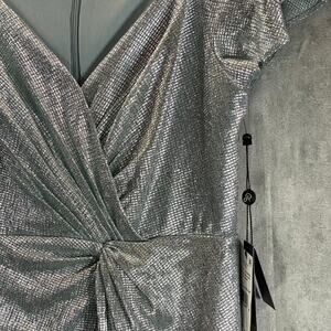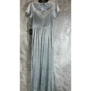 ADRIANNA PAPELL Women's Sea Glass Metallic Mesh Twist Short Sleeve Maxi Gown SZ 6