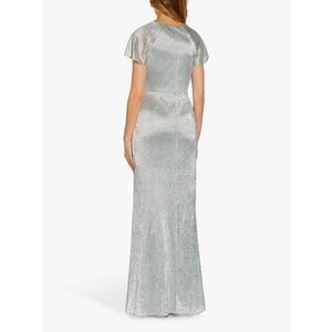 ADRIANNA PAPELL Women's Sea Glass Metallic Mesh Twist Short Sleeve Maxi Gown SZ6