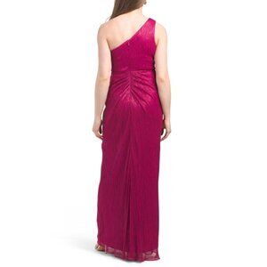 ADRIANNA PAPELL magenta One Shoulder Metallic Gown
