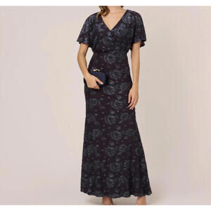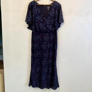 ADRIANNA PAPELL navy burnout velvet floral long blouson dress sz 10
